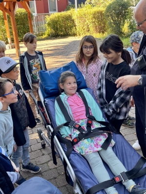 Im September fanden die Brandschutz-Tage statt. Dank großer Unterstützung der ortsansässigen Rettungskräfte konnte auf dem Schulhof ein Feuerwehrauto und ein RTW stehen, gelöscht werden, die Schutzkleidung ausprobiert, experimentiert und die Rauchentwicklung in einem Haus sichtbar gemacht werden.