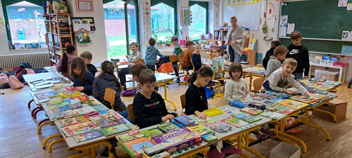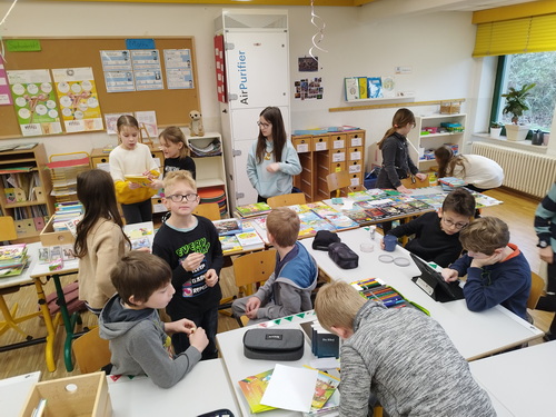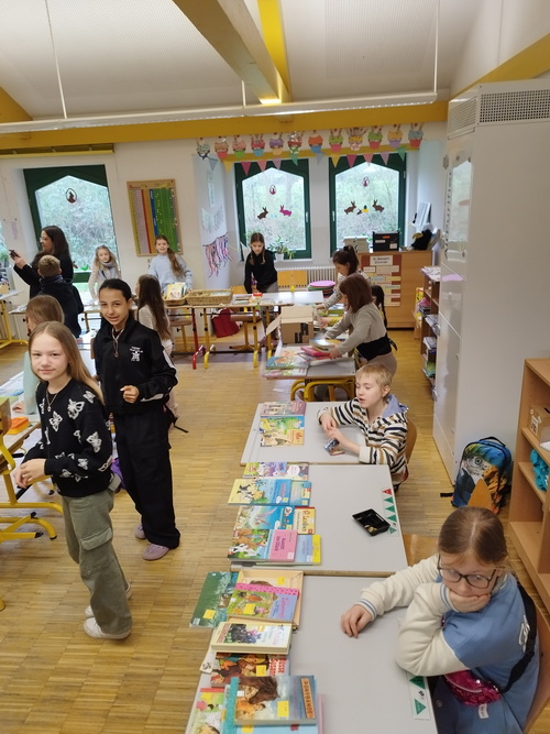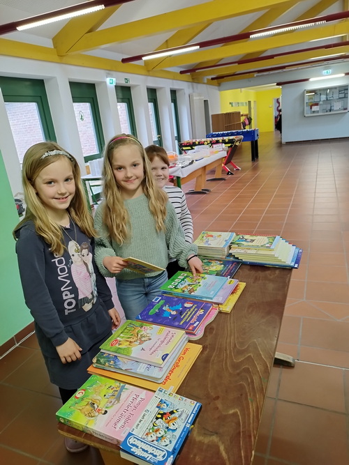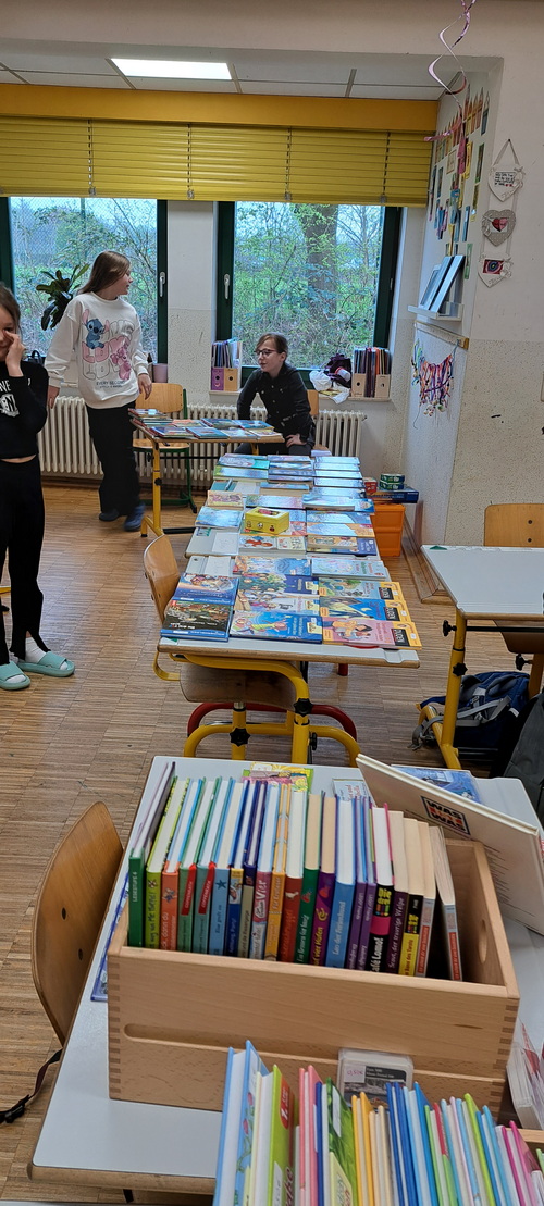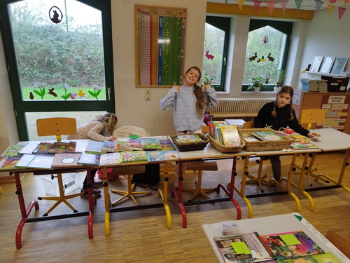 Für den letzten Schultag vor den Osterferien wurde in Vennebeck ein schulinterner Bücherflohmarkt organisiert. An diesem Tag konnten die Kinder eigene Bücher verkaufen und an anderen Ständen Bücher für kleine Preise einkaufen. Somit ist für ausreichend Lesestoff in den Ferien gesorgt worden. Ein großes Dankeschön geht an die Eltern, die durch den Verkauf von Muffins 170,- € eingenommen haben. Dieser Gewinn wird in die Ausstattung der Schulbücherei investiert, damit das Angebot um diverse Gesellschaftsspiele erweitert werden kann.