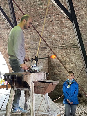 Die Klassen 3a und 3b wurden „Mit Feuer und Pfeife“ zu Glasforscher*innen. Zweifelsohne waren sie mit Feuereifer unterwegs, wenn auch ohne Pfeife. Nachdem die Schüler*innen Kohlen geholt hatten, mussten sie das Gemenge aus Sand, Kalk und Soda herstellen. Nun ging es in den Glasturm, wo sie dem Glasbläser zuschauten. Faszinierend, wie sich aus einem glühenden Glasklumpen ein schönes Trinkglas entwickelte. Nachdem die Verpackungs- und Transportfrage des Glases in der Korbflechterei geklärt war, gab es einen Kurzeinblick in die Glasschleiferei. Glas – welch wunderschönes Material! Kein Wunder, dass der ein oder andere Euro von der Hosentasche in den Shop wanderte. Wenn du auch wissen möchtest, was Glashonig ist, schau dich mal in der Glashütte um. Es lohnt sich auf jeden Fall. |